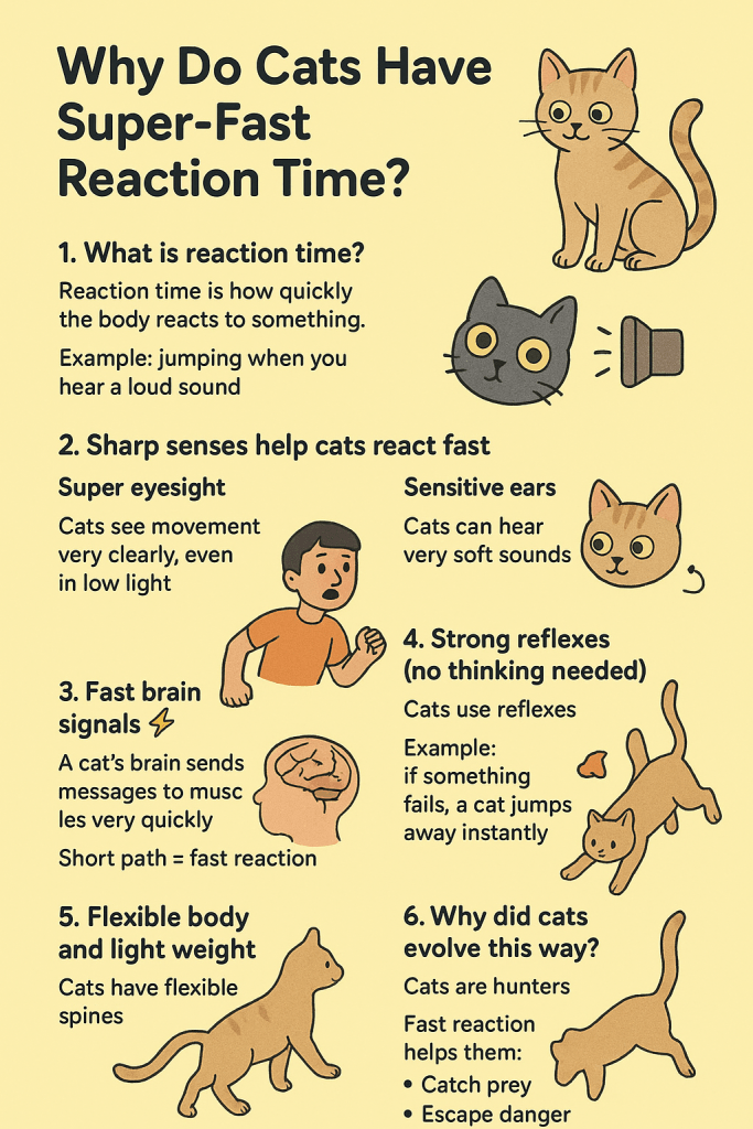 🧠 Cats react in about 20–70 milliseconds, which is much faster than humans!