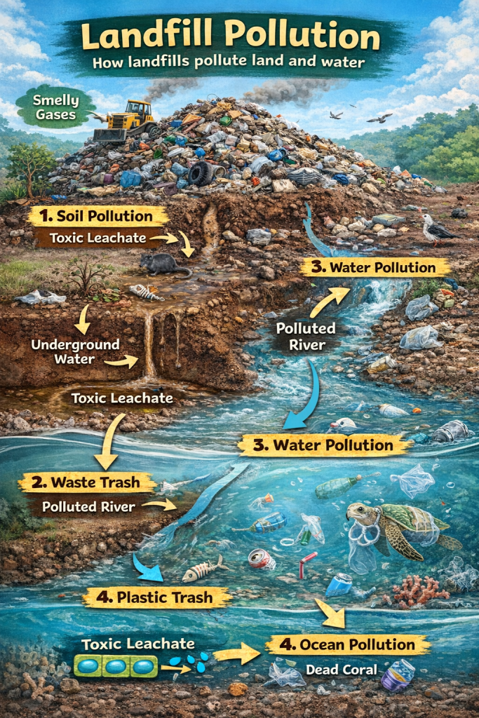 π§ How landfills pollute water (rivers & oceans)